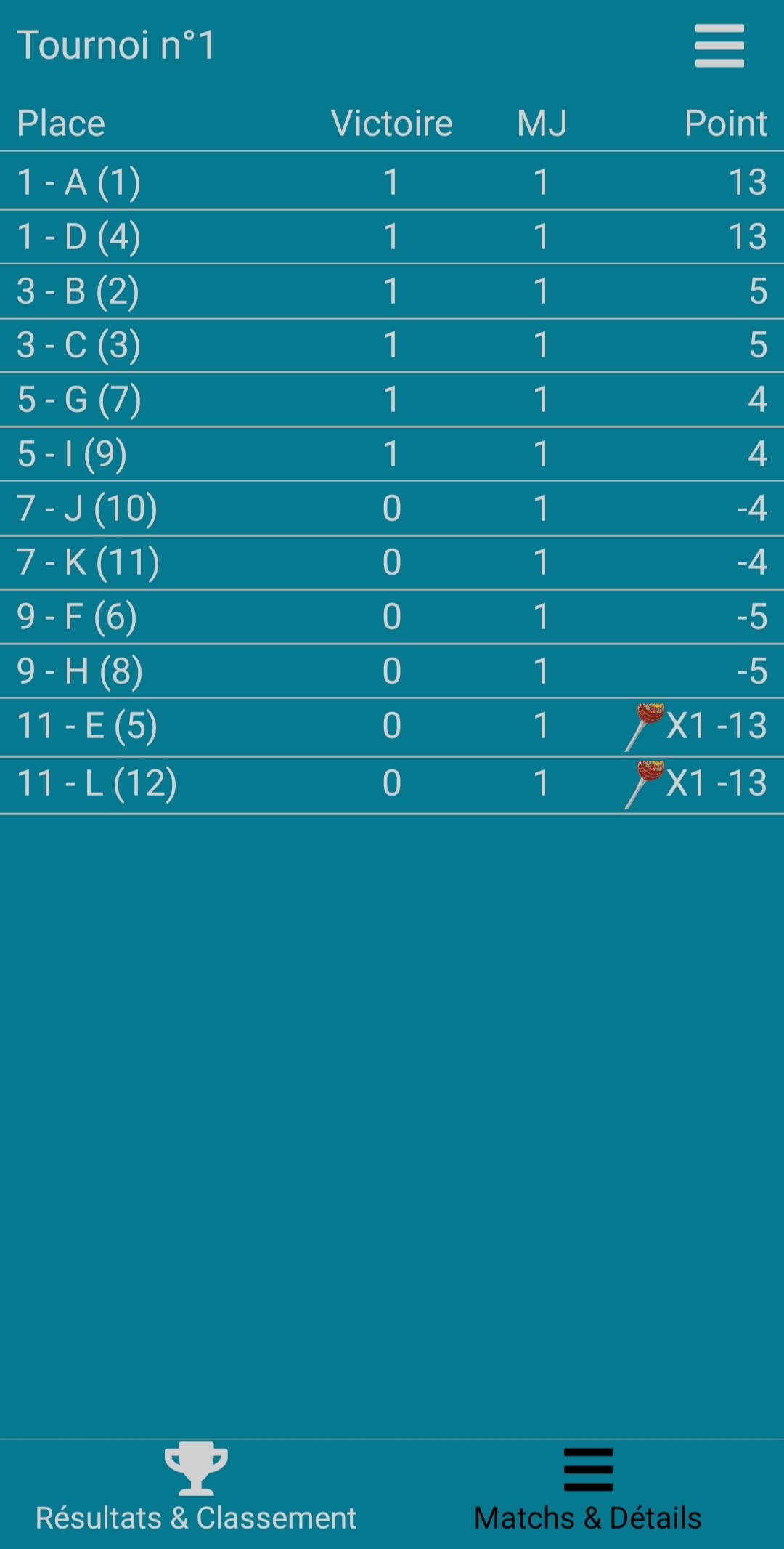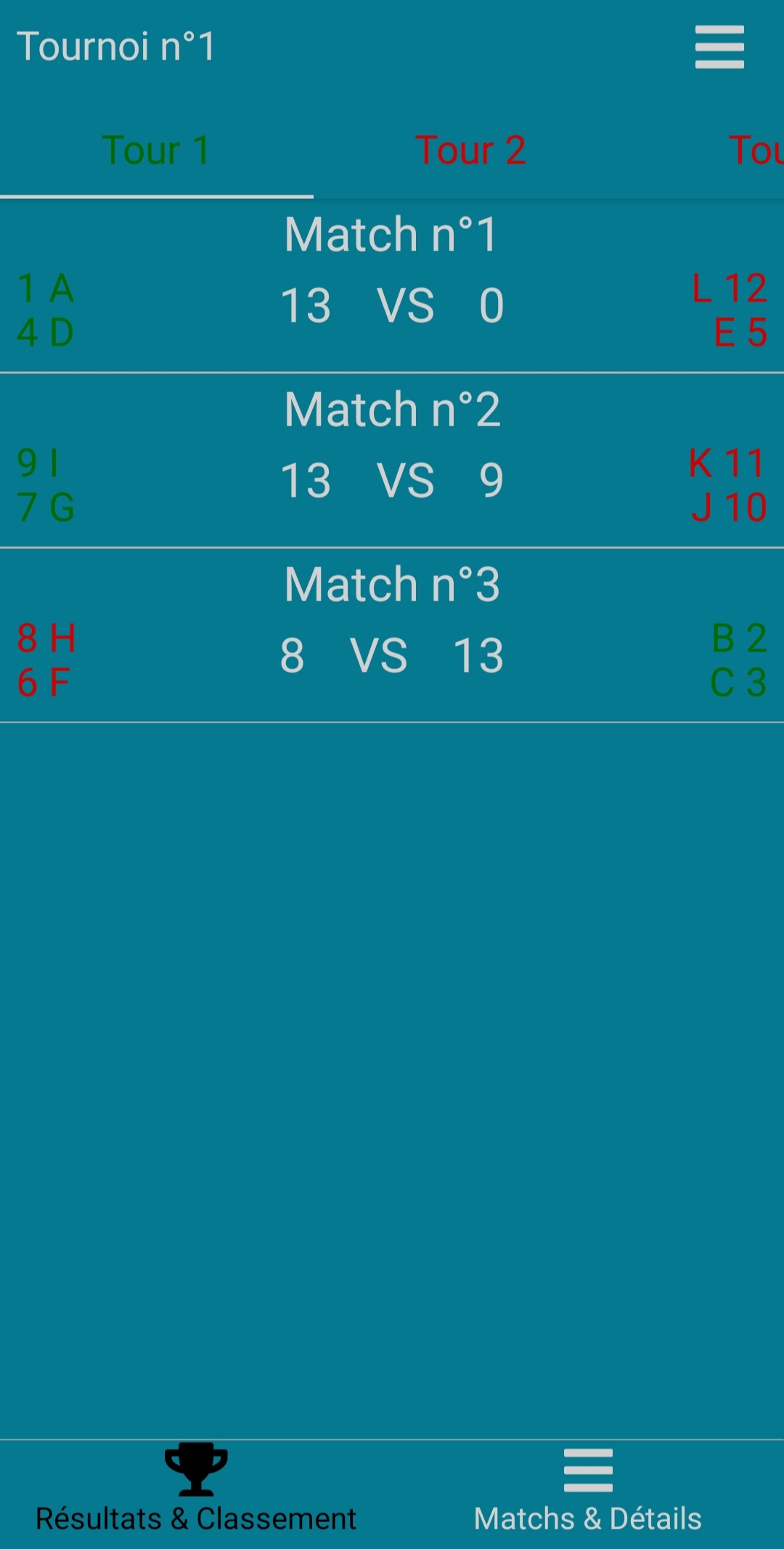 La liste des matchs ainsi que le classement peuvent être exportés dans un PDF