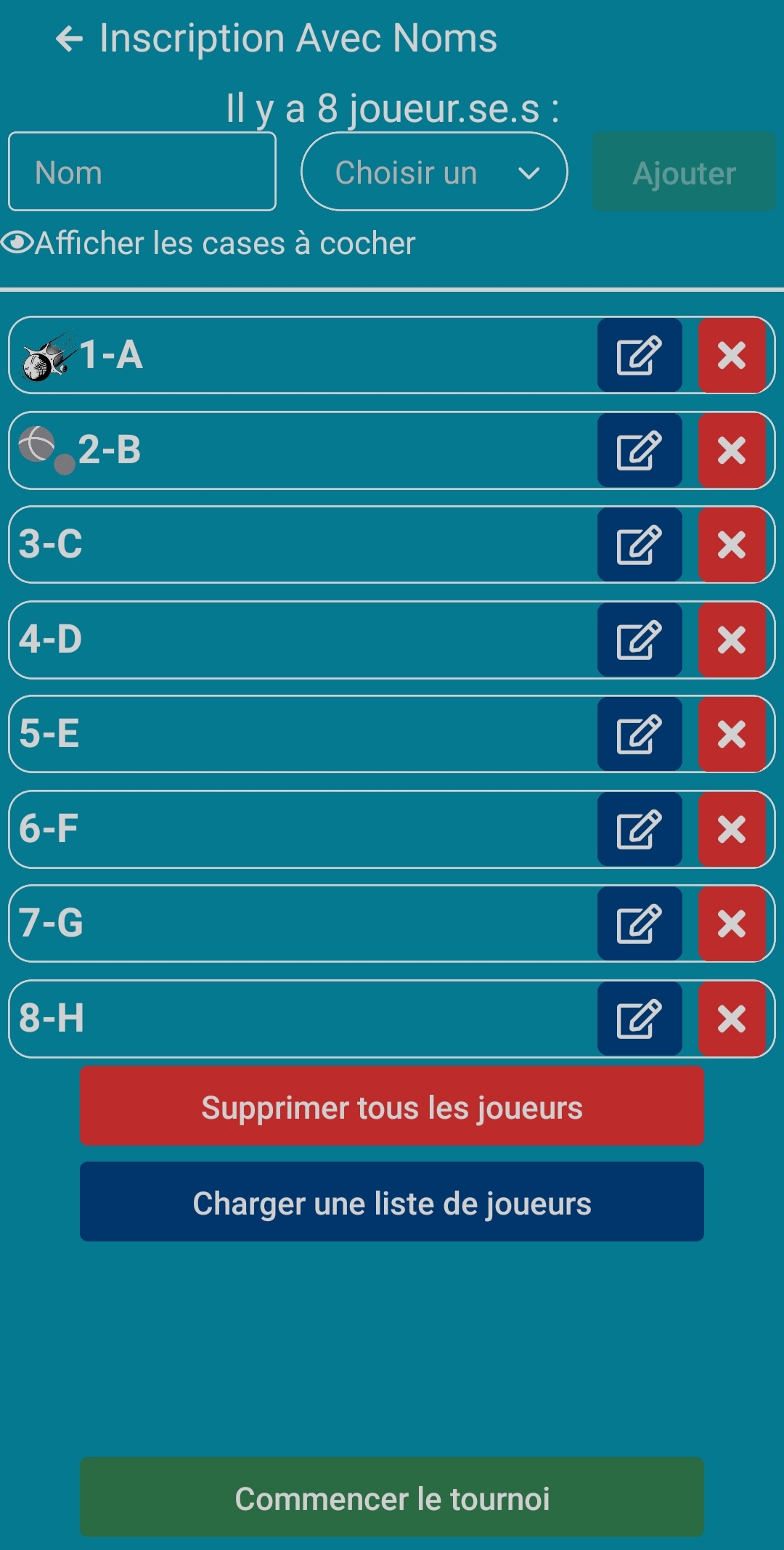 Vous rentrez les noms des joueurs ainsi que leur type (Tireur, Pointeur, Enfant) et c'est parti !