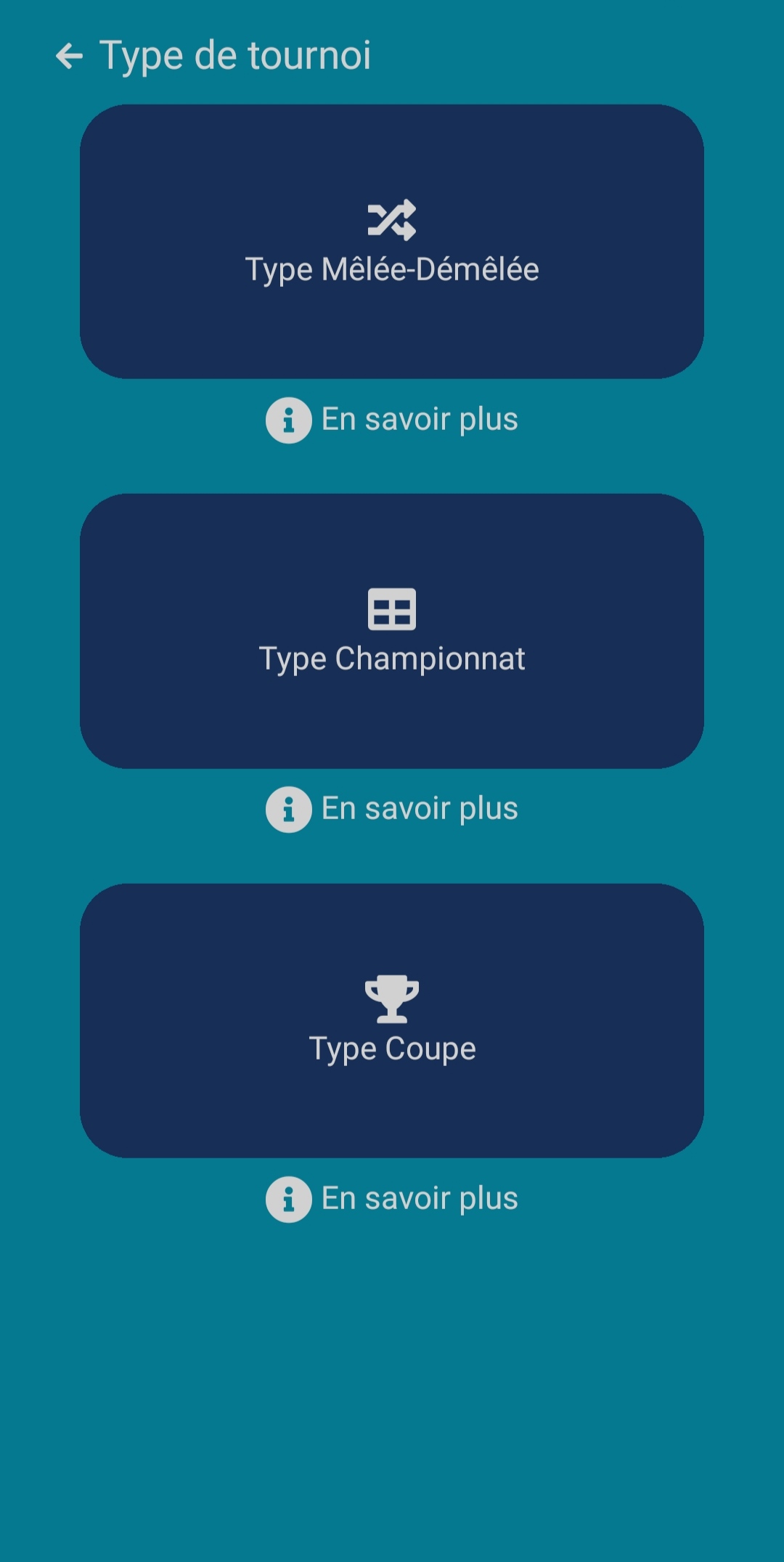 Le tournoi peut être en Mêlée-Dêmélée, Coupe, Championnat
